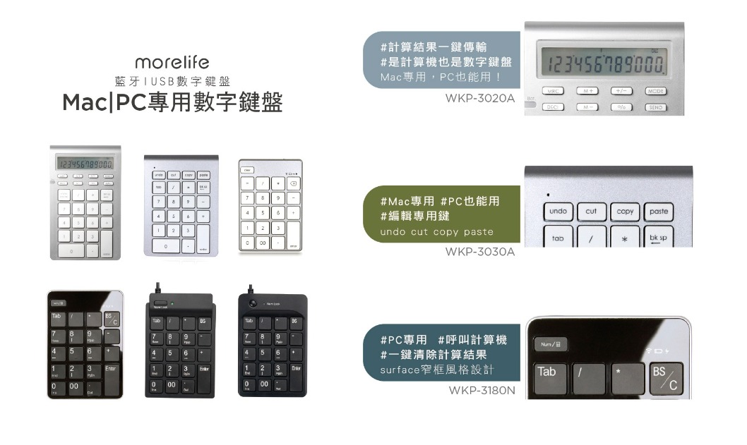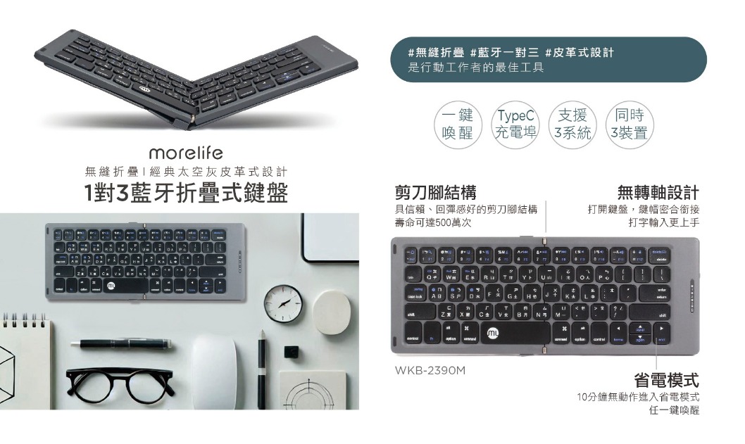 morelife 1對4藍牙Mac超薄鍵盤WKB-1700M1GK