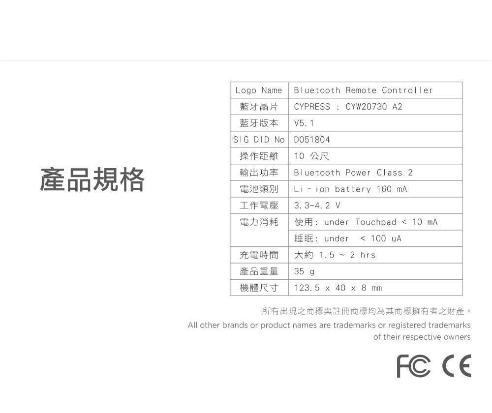 藍牙資料:CYPRESS BT 5.1(相容於Bluetooth 3.0)