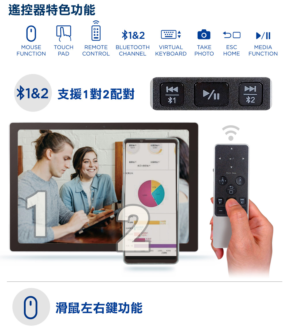 morelife BRC-500 直播/電子書/追劇/簡報/多媒體/藍牙1對2 滑鼠觸控式 藍牙遙控器