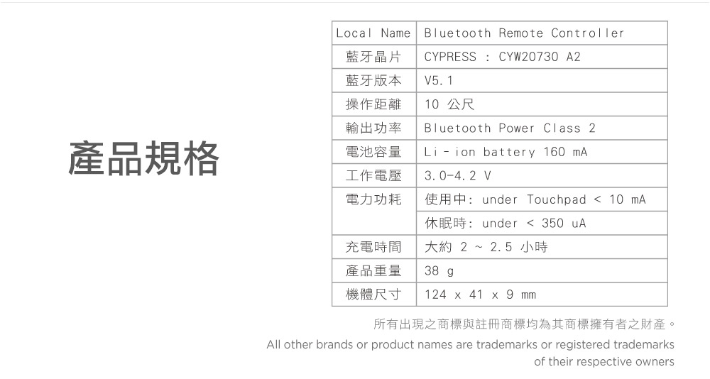 藍牙資料:CYPRESS BT 5.1(相容於Bluetooth 3.0)