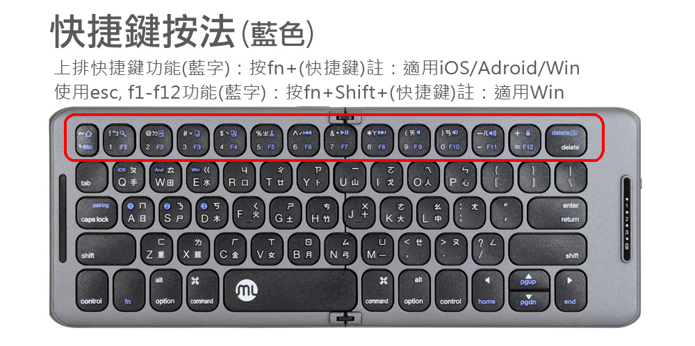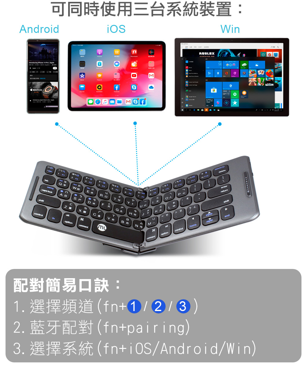 morelife WKB-2388M 1對3 無縫折疊 中文介面 藍牙折疊式鍵盤