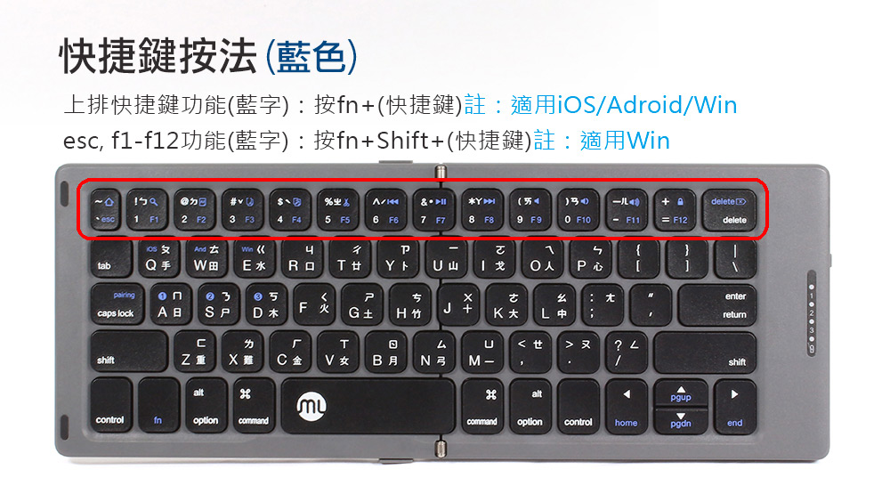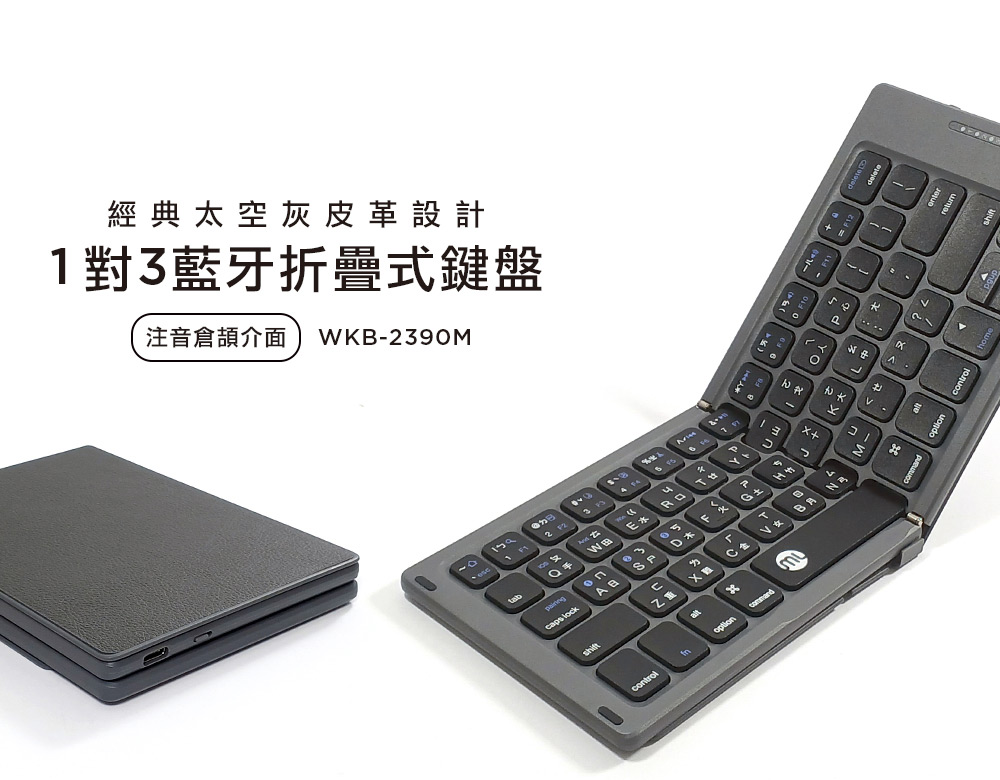 morelife WKB-2390M 1對3 無縫折疊 皮革設計 藍牙折疊式鍵盤
