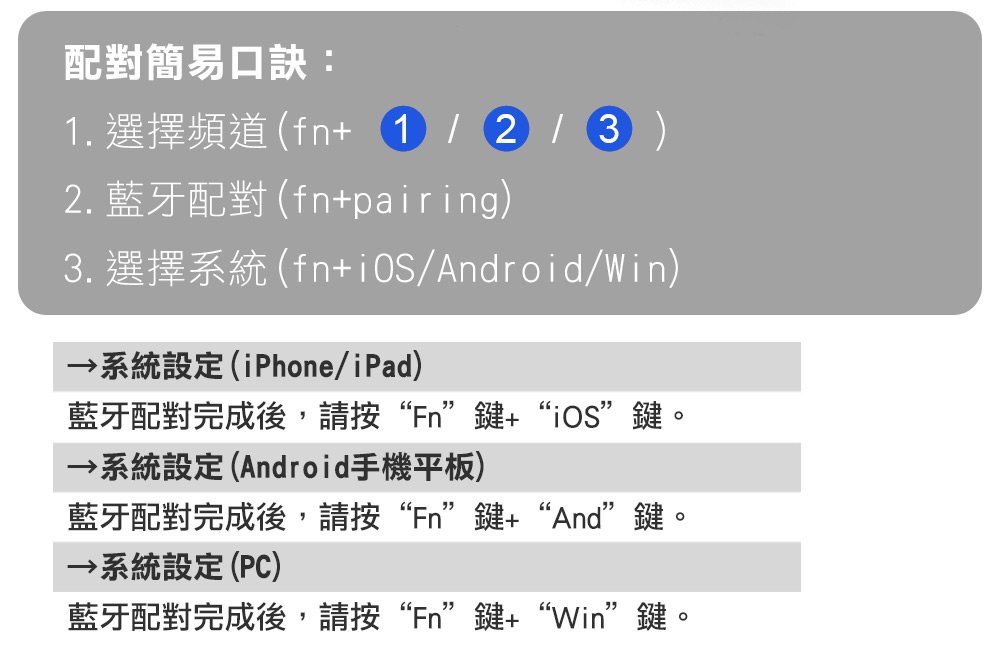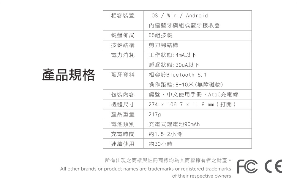 包裝內容物:鍵盤(WKB-2390M)、AtoC USB充電線、中文使用手冊