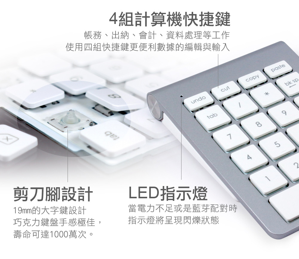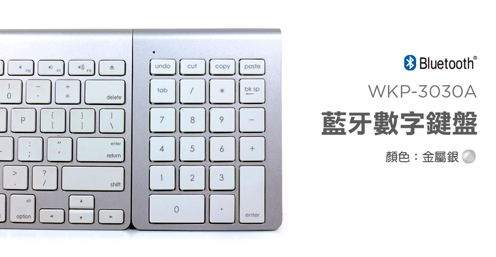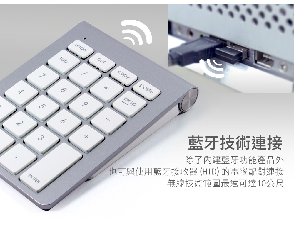 註:藍牙鍵盤/藍牙數字鍵盤不附藍牙接收器,需另購。