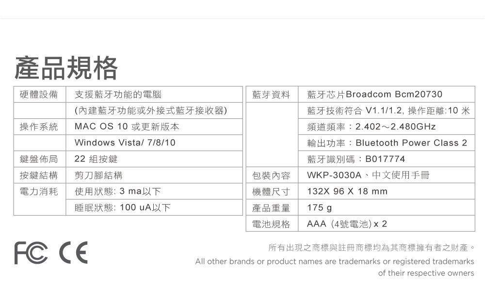 包裝內含:數字鍵盤(WKP-3030A)、中文使用手冊